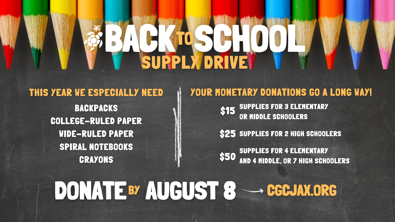 - Volunteer to manage one of our annual giving campaigns. You can choose to help with projects like our School Supply Drive and our Holiday Gift Drive.